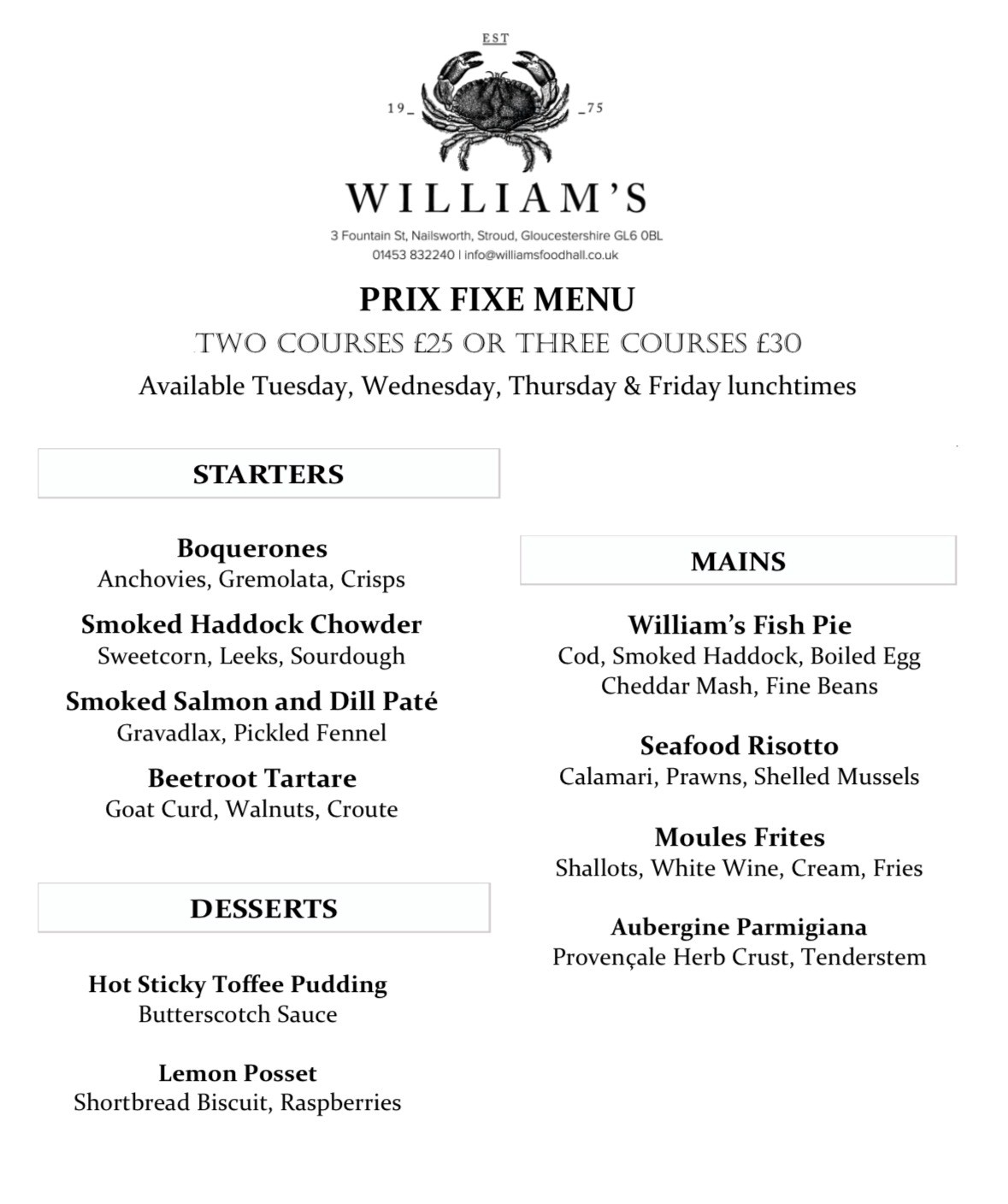 William’s is a multi-award-winning seafood restaurant, fishmonger, delicatessen and caterer in the heart of Nailsworth, Gloucestershire.